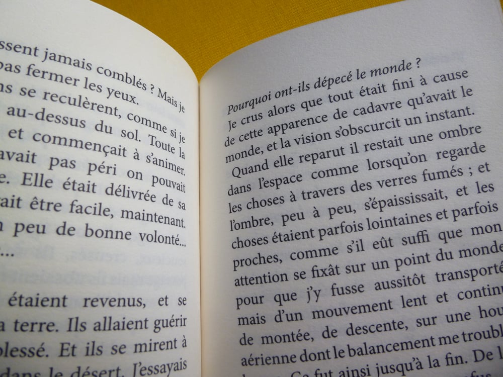 Au centre de chaque cercle s’agitait une petite chose dont il eût été difficile de dire si c’était une bête ou un homme, mais qui devait parler ou mugir, car sa tête n’était qu’un trou s’ouvrant et se fermant sans cesse. Et par moments la foule à son tour n’avait plus de visages, mais des trous à la place des visages.